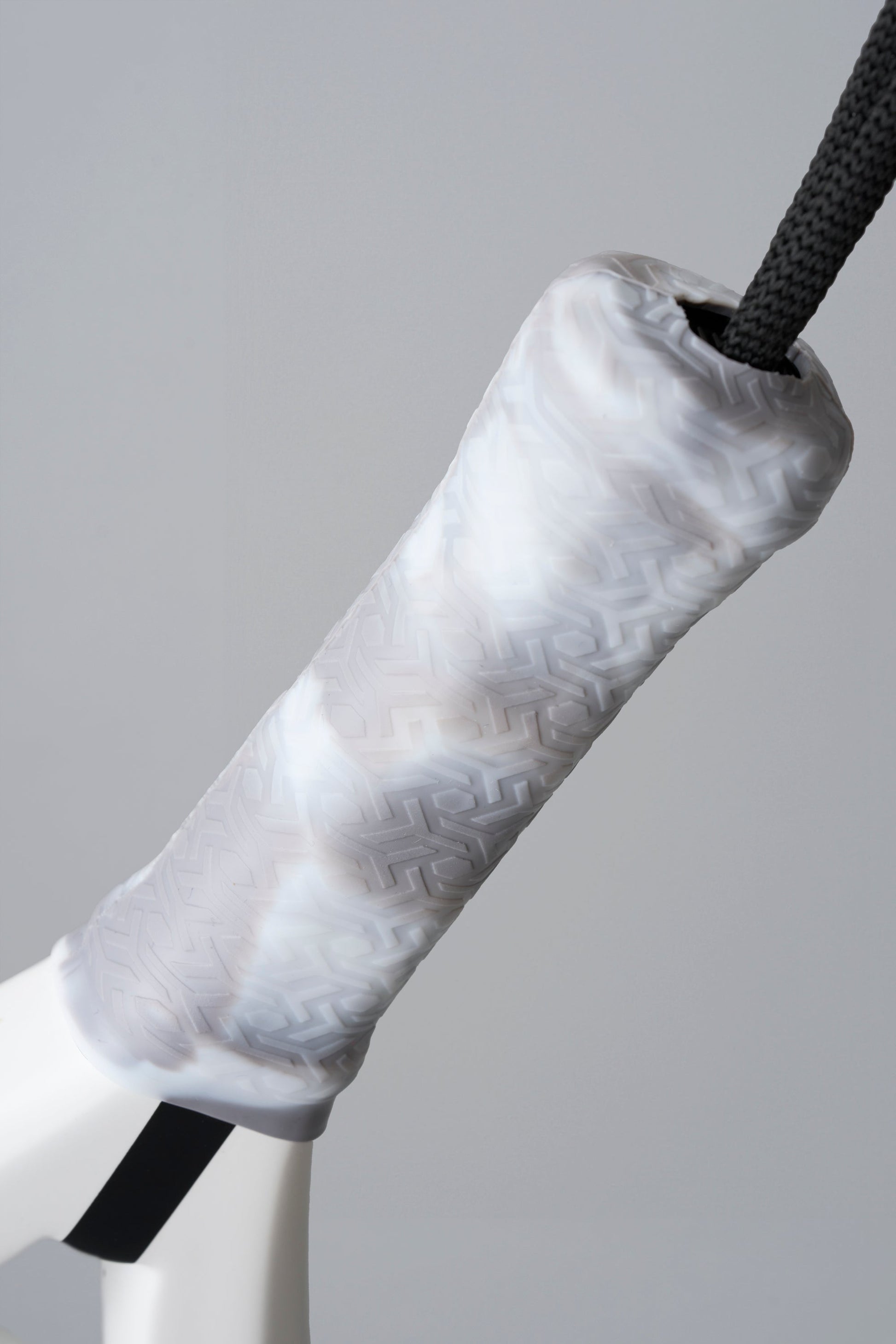 Grip de silicona antideslizante con un grosor de 2 mm. Cuenta con una cara interior lisa que se adhiere a la superficie a instalar y una exterior con un relieve en forma de hélice que permite un gran agarre.